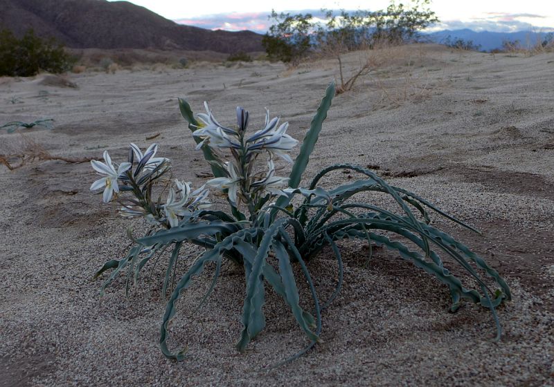 Although the vast majority of Anza-Borrego Desert State Park was dry as a bone as of 30 November 2018, a few favored areas received rain from thunderstorms on October 12 and 13, producing good annual germination, and have a number of plants already in bloom. There were well over 50 species of flowering plants in November in the Borrego Badlands and Canyon 41 / Canebrake areas! To the great surprise of many of us, we now have small numbers of desert lilies and cacti blooming in early December (see Ernie Cowan's San Diego Union Tribune column).