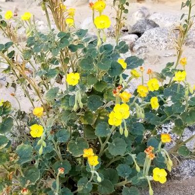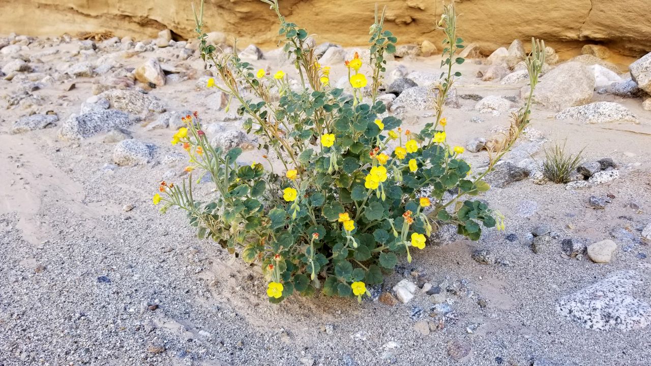 20 February 2022. Mark Stevens and Rebecca Labog report that they found eight annual species in bloom in the "Little Baja" area north of the Borrego Palm Canyon campground. The plants were all small.