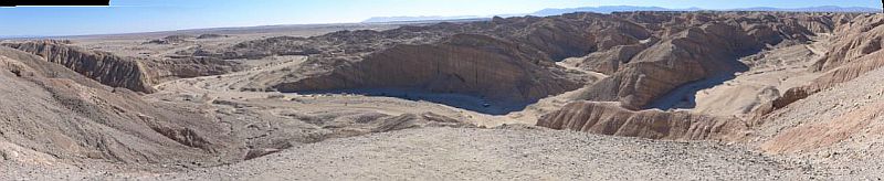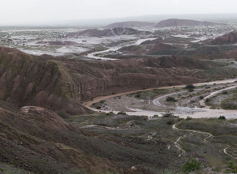 Places of the Borrego Desert: View From S22 Overlook of the Northernmost Fork of the Arroyo Salado As of December 2016, it has been almost twelve years since it actually rained enough in the desert proper to produce a fabulous display of flowers, and for the washes to run with water. Back in the glorious period of October 2004 to May 2005, it really rained in the desert. Fortunately, Aaron Schusteff captured a stunning panorama showing what the northernmost fork of the Arroyo Salado looked like, from a pullout along S22 in Imperial County a bit east of the San Diego County border. On 19 December 2016, Tom repeated the photograph.