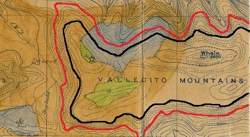 Analysis of that map showed that the base 1913 topo map is largely fictional in areas that could not be seen from the existing roads at the time. The contours in Blair Valley and east, west and south of Whale Peak were made up, and do not correspond at all to the actual topography. For example: