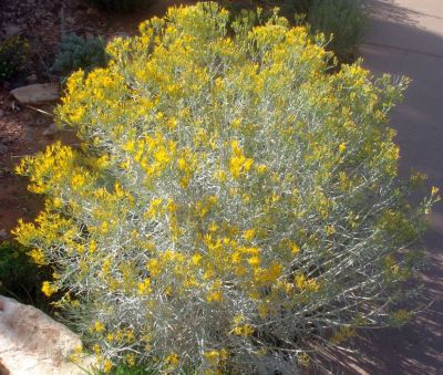 The S. Entrance road to the Village, beginning just north of the junction with the Desert View Drive, is lined in many places with this beauty; the Visitor Center is surrounded by it; and the Bright Angel Lodge / Railroad Track areas are ablaze from this species when it is in full bloom.