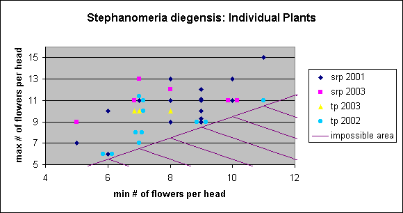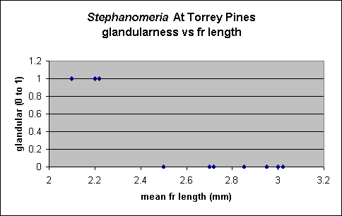 Glandular specimens were excluded in the above plot, for those that wish only to accept non-glandular plants as pure S. diegensis. The data in the plot comes from a total of 46 heads.