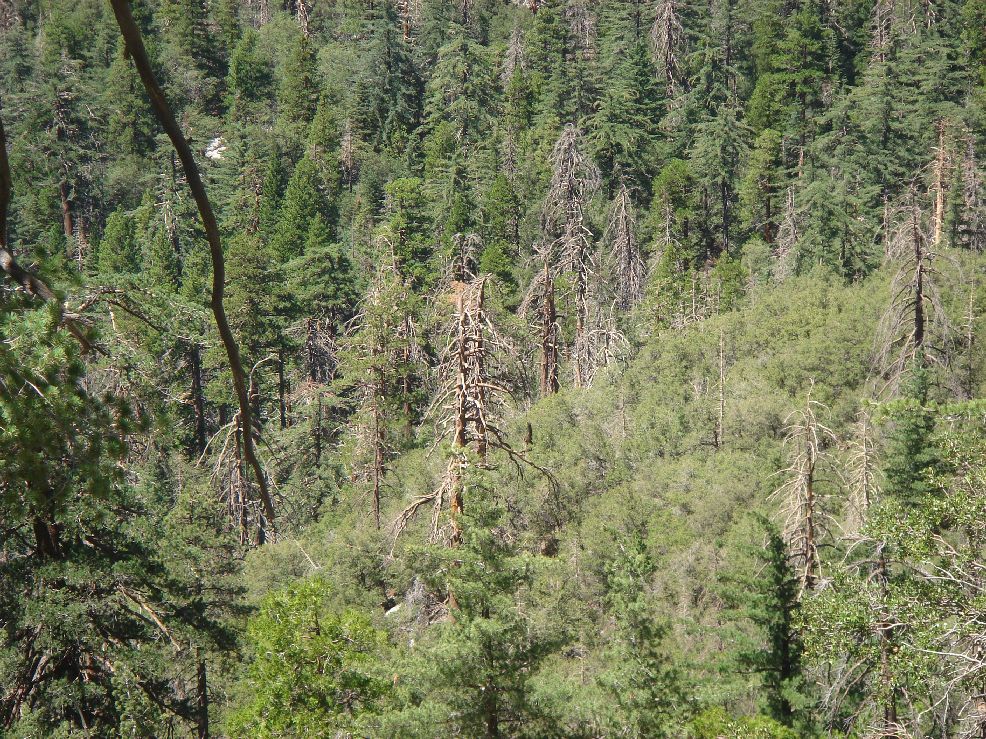White Fir, Abies concolor The following photograph is unfortunately quite typical of the area of the Devils Slide Trail and below: