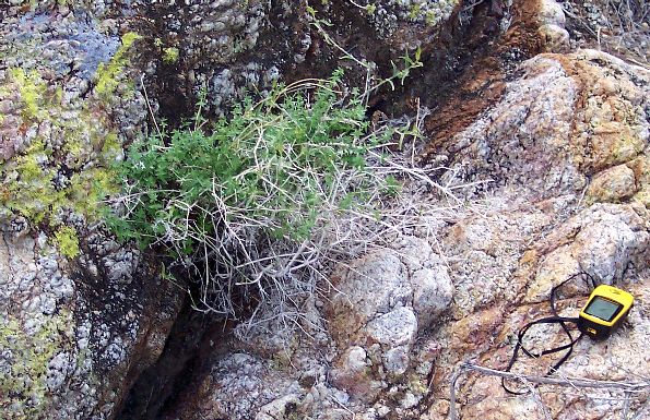 Borrego Desert Plants: desert bedstraw, Galium stellatum ssp. eremicum This plant was found in Henderson Canyon on 2 February 2008. Note the woody stems from previous year's growth.
