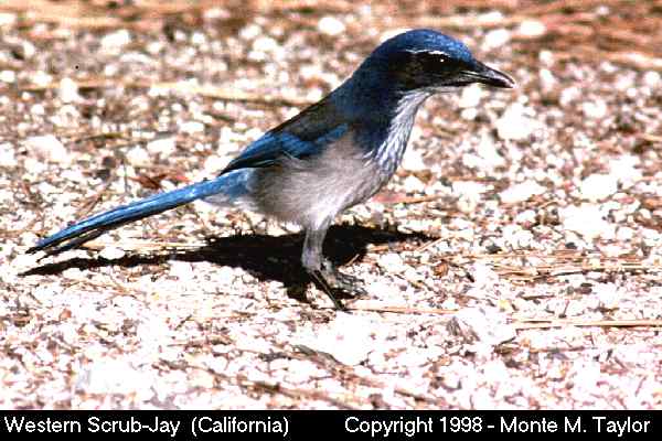 At the junction of the trail to Henninger, birds congregate in the trees and on the utility wires--many western bluebirds, some band-tailed pigeons and a single sleek, tufted phainopepla attracted to the mistletoe berries. Smaller tufted gray birds, oak titmice, feed on the rocky slope. White-breasted nuthatches busily spiral down the spruce trunks. A hawk screams eerily in the distance, out of sight in the opacity.