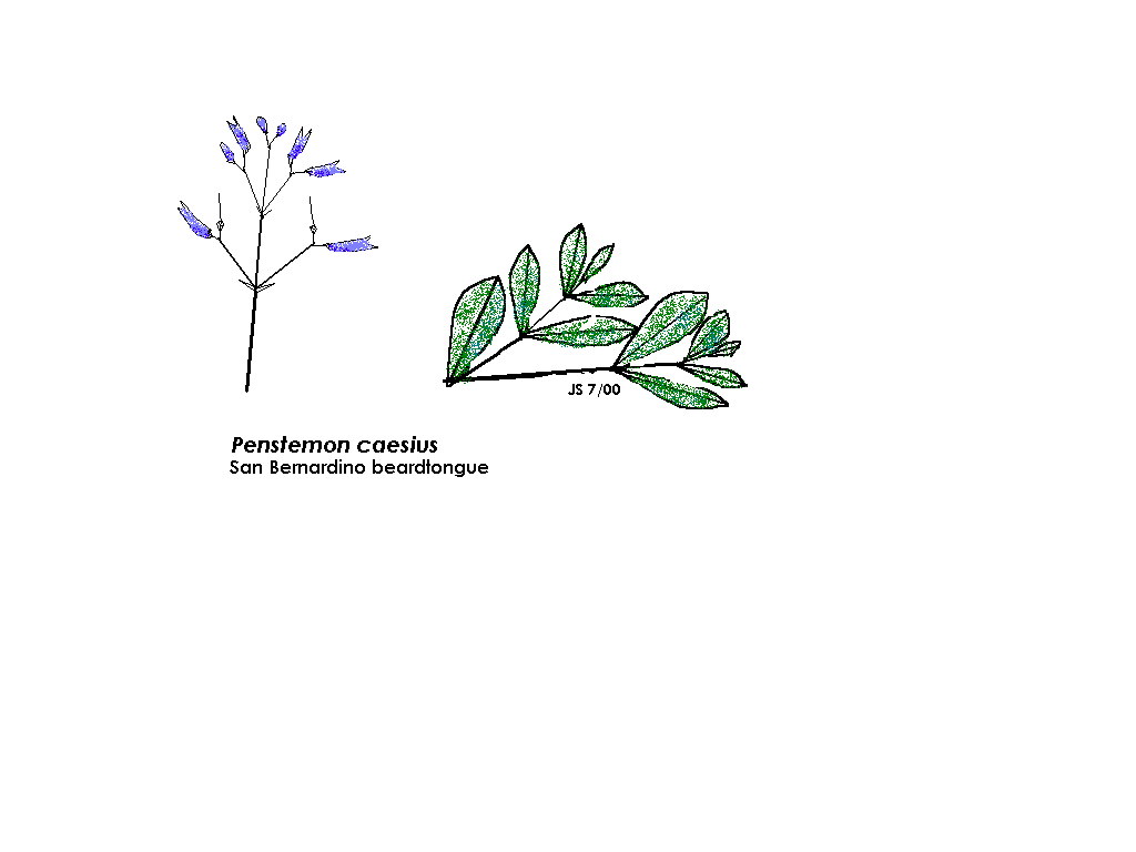 - Small floppy plant, elevation above 6700' = Penstemon caesius