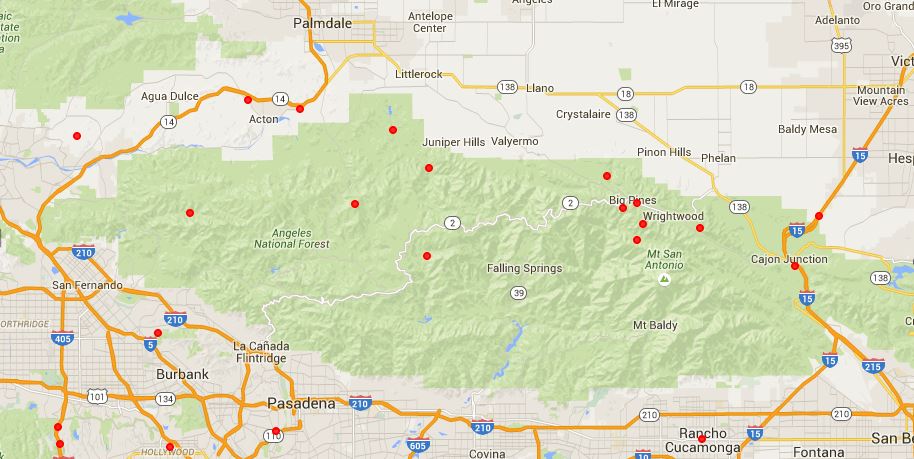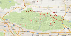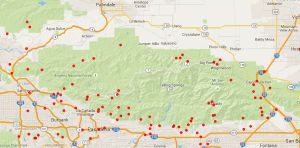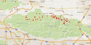 Note that since Table Mountain is in the extreme northeast corner of the San Gabriel Mountains, this biases the geographic distribution maps presented below to always include the Table Mountain area.