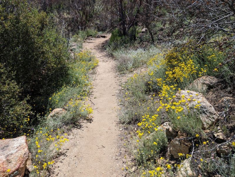 The trail mostly goes through unburned chaparral from mile 1.2 to mile 1.9. ![]()