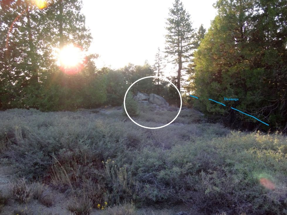 - The clump of boulders labeled #2, showing their placement on the south side of the drainage: