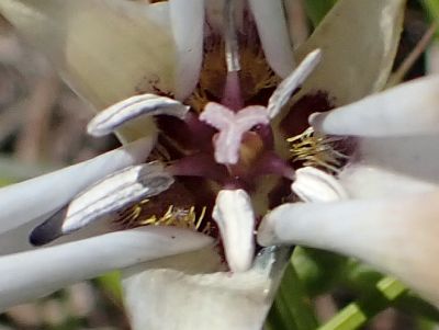 Keir Morse sugggested it would be interesting to take photographs of individual Calochortus flowers every day, to see how long an individual flower lasts, and how its appearance changes with time. Holtsford 1985 reported that the flowers of C. leichtlinii are functionally male for the first two days, with the stigma being receptive to pollen only on the third day.