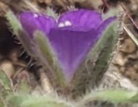 We did find a single depauperate plant, on its last flowers, with a corolla length of 5 to 6 mm. If this is the only specimen that was vouchered, it would be easy to determine it as P. curvipes. But a glance at the flower from the side would deny that determination. I suspect that the San Diego County vouchers cited by Howell as being P. curvipes were similar depauperate plants. One was from "Laguna Mountain", possibly from the Desert View area mentioned above; three were from "Oak Grove to Palomar Mountain", a very unlikely location for P. curvipes, but a very likely location for a depauperate plant.