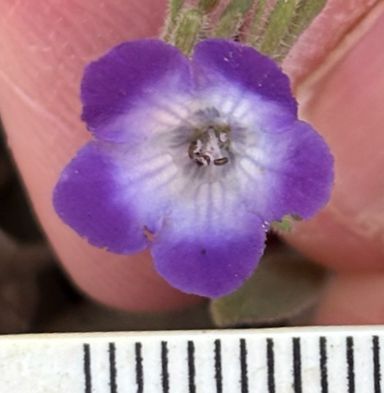 The best hope for finding it in San Diego County, among locations where these two species had been known to occur, was on the Desert View area of the Lagunas. Alas, all the iNat obs from that area are clearly P. davidsonii. Jim Roberts and I measured the plants near there on 29 May 2025, giving corolla lengths of 5 to 11 mm, and corolla widths of 5 to 12 mm, clearly consistent only with P. davidsonii.