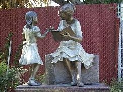 ![]() | 4 | March 1999 | Fallbrook Library | A bronze sculpture Fallbrook Friends, by Fallbrook artist Marsha Brook. The life-size sculpture of a woman sharing a book with a child was donated by Irv Handleman as a memorial to his late wife, Carrie, who volunteered many hours at the library.