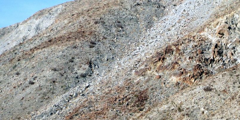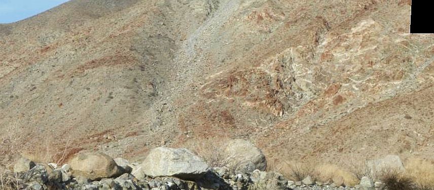 Warning: the trees live on a very steep, unstable bouldery slope that could be dangerous to traverse!. We recommend that you only get close enough to be able to see the trees with binoculars. If you want to see an elephant tree up close, go to the Elephant Tree Discovery Trail six miles south of Ocotillo Wells, or to Torote Canyon. In both places it is an easy walk to an Elephant Tree.