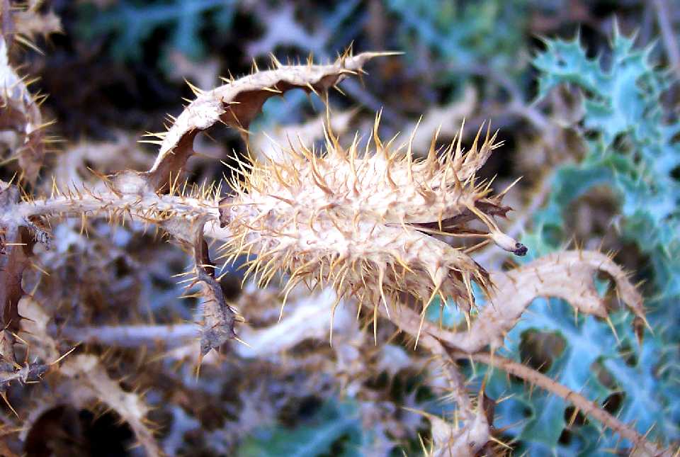 Furthermore, assuming that my photographed specimens are indeed Argemone, they key to A. arizonica in the Flora of North America key as well as in the 1999 Flora of Arizona Argemone treatment. Those keys use some of the McDougall differences, plus one additional discriminant: A. munita has main lobes of leaves generally rounded at the apex, which once again does not fit the plants in my pictures; my plants have distinctly non-rounded lobes.