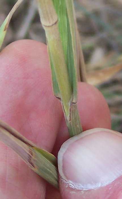 Leaves: 8 mm wide, flat; sheath open only 4-14 mm; ligule membranous