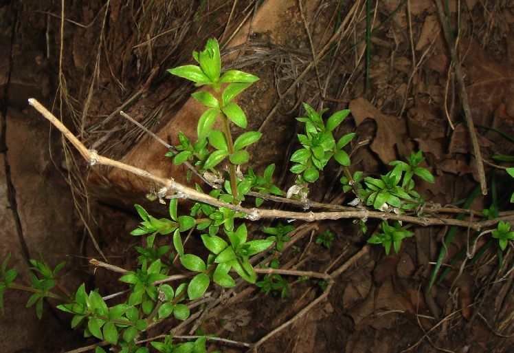3' Leaves linear, oblanceolate, rarely elliptic ... G. wrightiiAll of the plants found so far on the upper Bright Angel Trail are perennials with narrowly lanceolate to ovate glabrous leaves, which would make them Galium munzii ssp. ambivalens. However, there is such striking variation in the leaf shape, with the narrowly lanceolate plants having almost linear leaves, that I am not sure whether those plants are this determination. The plants with almost linear leaves also seem to have a leaf base that fits the description of the leaves of G. wrightii. See the pictures below, and let me know if you think these fit another taxon better.