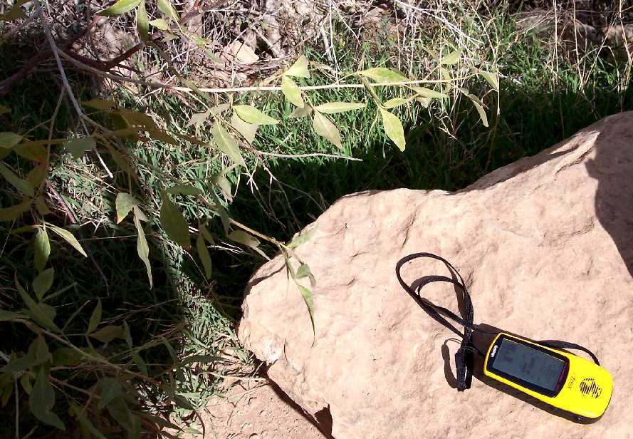 First occurrence on Bright Angel Trail: mile 0.76, elevation 6344 feet (1934 m). The first off-trail occurrence is at mile 0.18, elevation 6748 feet (2057 m).