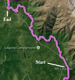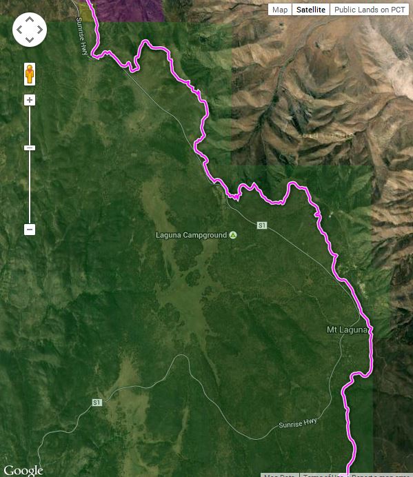 Segment Start Segment End Segment Length Elevation (feet) Min Max Range Mt. Laguna (Desert Overlook) Pioneer Mail Picnic Area 10.5 miles 5220 6010 790 This section covers mile 42 to mile 53 from the Mexican Border (see notes on accuracy of mileages).