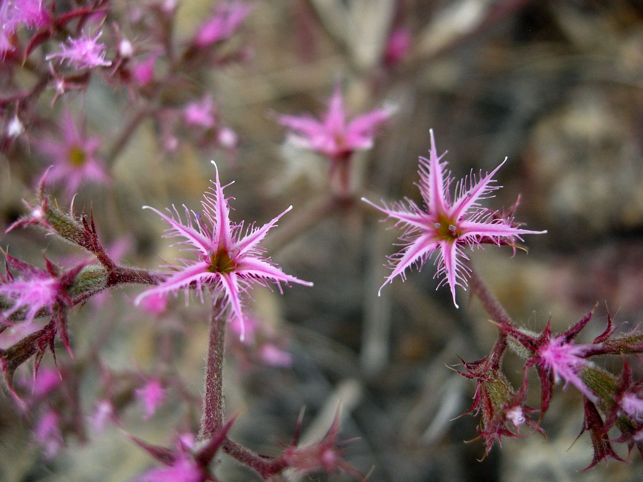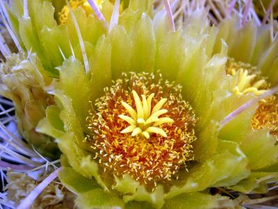 But this is a fascinating segment botanically! This is the only part of the PCT that passes through an area with the classic signature plants of the Lower Colorado Desert vegetation, with species as ocotillo, Fouquieria splendens; California barrel cactus, Ferocactus cylindraceus; and teddy-bear cholla, Opuntia bigelovii (Figs. 1 and 2). In fact, this is one of the best places to observe California barrel cactus, accompanied here by Gander's cholla, Cylindropuntia ganderi; Engelmann's hedgehog cactus, Echinocereus engelmannii; and California fish-hook cactus, Mammillaria dioica.