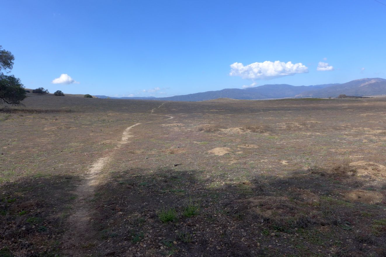 This is a pleasant short hike as you continue along the grasslands in this geologic basin filled with alluvium. As you enter some bedrock, the plant diversity increases and the grasslands change into a oak woodland. The oaks provide welcoming shade as you then continue through them following a wide dry streambed.