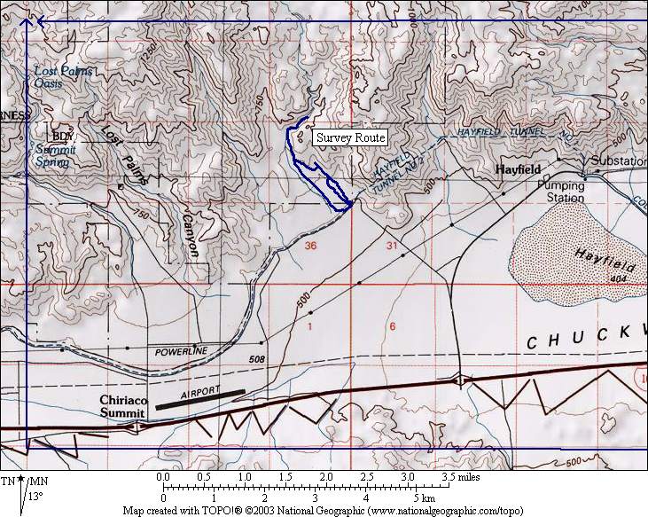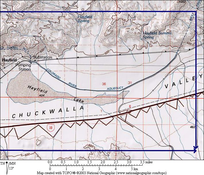 In addition to our survey, we have compiled vouchers from a larger area surrounding these washes that is centered on the Hayfield area. The area was chosen to include all of the nearby south-facing slopes, and measures five miles north-south and 13 miles east-west.