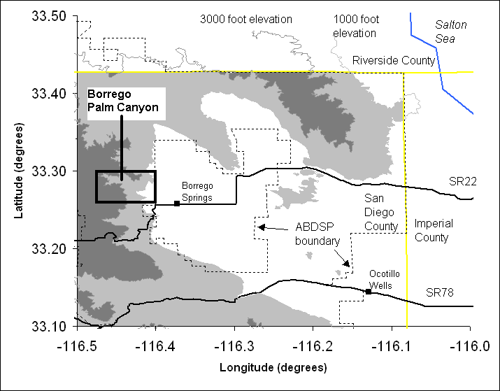 Location Borrego Palm Canyon is directly west of Borrego Springs: