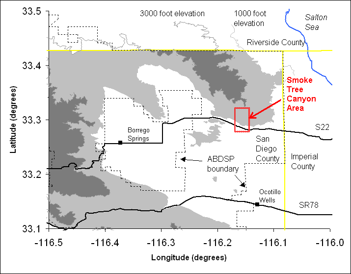 - a survey of Smoke Tree Canyon on 2 March 2017 by Nancy Accola, Tom Chester, Walt Fidler, Carla Hoegen, and Fred Melgert.