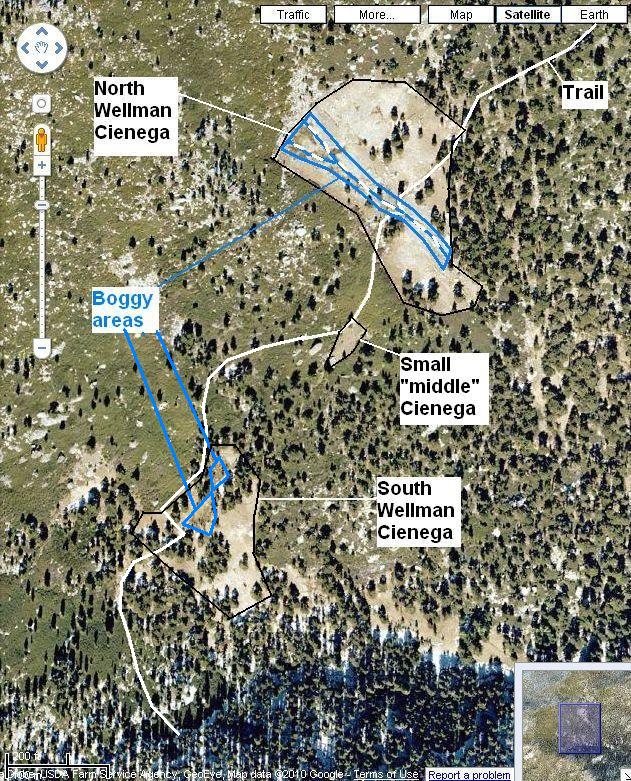 See also a Google satellite map showing these areas (labeled version) and a pano of the northern boggy area of the south Wellman Cienega taken from the trail.