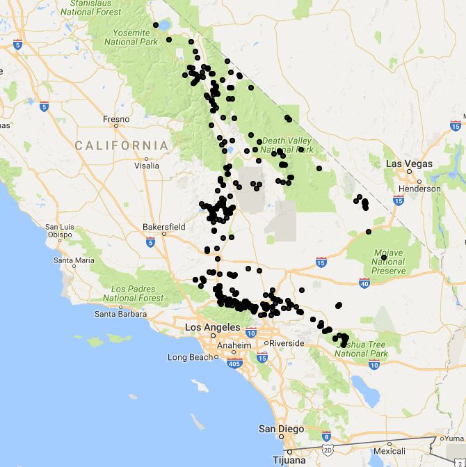 The population in Garner Valley and on the PCT Desert Divide is at the eastern edge of the main population, and the plants here are at the highest elevation known for this species.